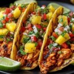 These Pineapple Chicken Tacos are sweet, savory, and bursting with fresh flavor. Juicy marinated chicken, bright pineapple salsa, and warm tortillas make them a fast, family-friendly favorite.